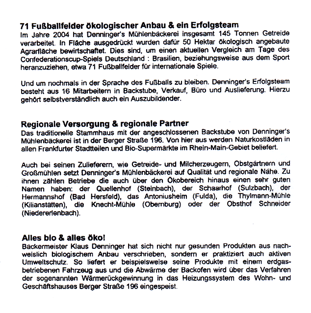 Ganzer Stolz des Unternehmens ist die hauseigene Steinmühle. Das Vollkornmehl für die vielen Vollwert-Produkte wird täglich frisch vermahlen, nur diese Verarbeitungsweise garantiert, dass auch der äußerst wertvolle Korn-Kreimling im Vollmehl enthalten ist. Man schmeckt den Unterschied! Für alle Roggenbrote wird hausgemachter Natur-Sauerteig verwendet, der lange ruhen muss. Das Ergebnis: Bio-Brote und Bio-Backwaren entfalten ihr volles Aroma, sind höchst bekömmlich und bleiben lange frisch. Die gepflegte handwerkliche Tradition und der bewusste Verzicht auf Zusätze erfordern eine Herstellung der Backwaren von Hand und machen sie zu einem naturbelassenem Lebensmittel mit einzigartigem Charakter. "Natürlich schmeckt`s am besten. Deshalb werden Biobrote ausschließlich mit Natursauerteig oder Hefe gelockert. Künstliche Backhilfsmittel sind tabu. Eine lange Reifezeit der Teige lässt natürliches Aroma entstehen, so kann auf Geschmackverstärker verzichtet werden. Aroma und Geschmack werden durch die eigens für die Backstube Profanter hergestellten Steinbacköfen vollendet. Unsere Steinofenbrote werden dadurch zur Spezialität" ist Helmuth Profanter überzeugt.